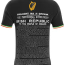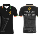 Celebrate Irish pride and heritage with this Irish Republic Proclamation Polo Shirt a premium black polo featuring the Proclamation of 1916 printed on the back and the golden Irish harp emblem on the chest.